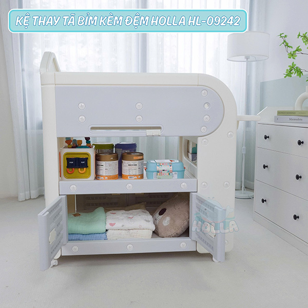 Được đánh giá là dòng sản phẩm chất lượng cao, bàn thay tã em bé Holla được thiết kế khoa học, hiện đại kêm tủ đựng đồ cho bé vô cùng tiện ích:
