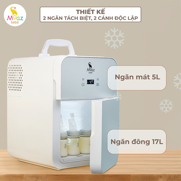 Thiết kế 2 ngăn tách biệt, 2 cánh độc lập, có thể làm mát và trữ đông sữa riêng.